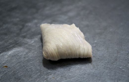▲薄く延ばした生地がロール状に巻かれているのがわかるでしょうか。