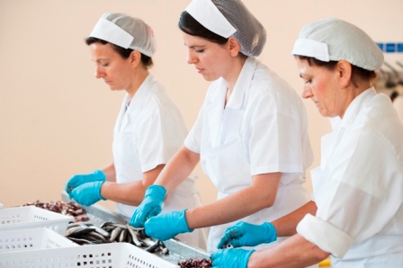 ▲塩漬け前に丁寧に手作業で下処理される様子