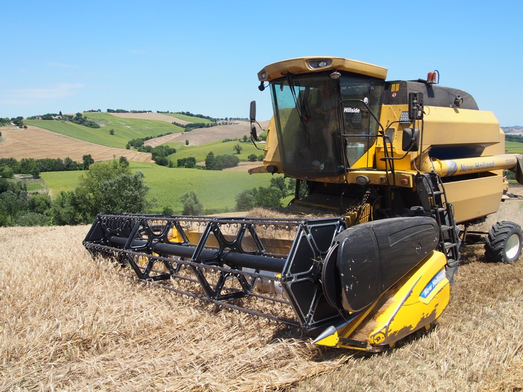 小麦畑では、ミエーティトレッビア(Mietitrebbia)という小麦の実だけを収穫する機械が活躍していた。前の小麦収穫部分が、横長のドリルのようになっており、両端から小麦を絡めとり、機械の中で実だけが取り除かれ、後ろから麦わらを排出するようになっている。