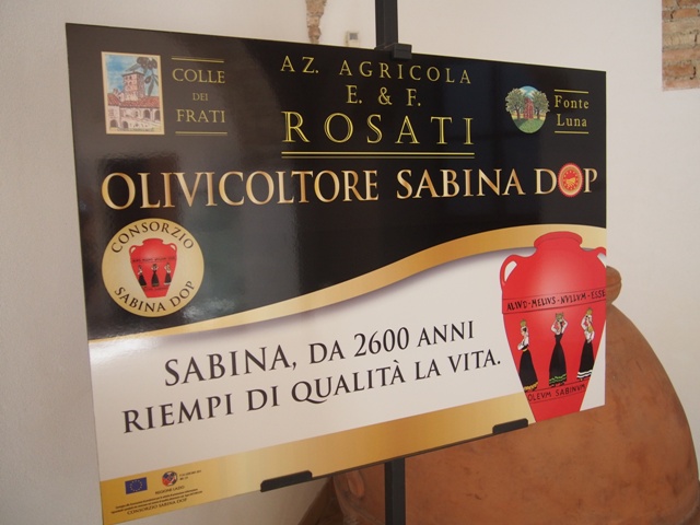 ローマからも車で1時間ほどのこのエリアからは、オリーブオイルがアンフォラ(2本の持ち手があるつぼ型陶器)に入れられてローマの街に運ばれ消費されていたという。実際、サビーナDOPのロゴマークに描かれたアンフォラが、ローマ時代から愛され続けているこのサビーナ・オリーブオイルの歴史を今に伝えている。