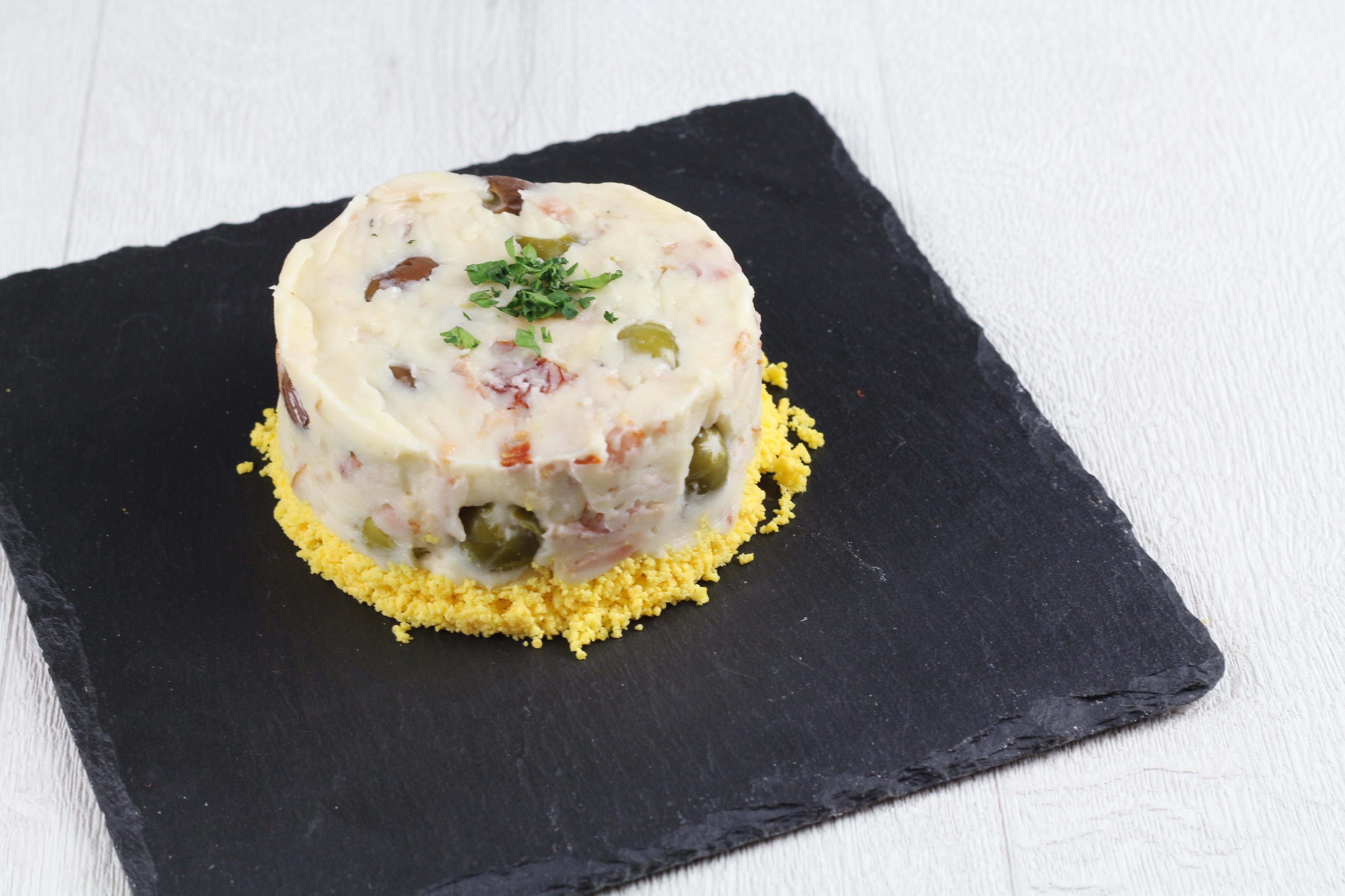 イタリアのポテトサラダ「インサラータルッサ」に燻製したオリーブの実を混ぜ、よりお酒に合う味わいに!