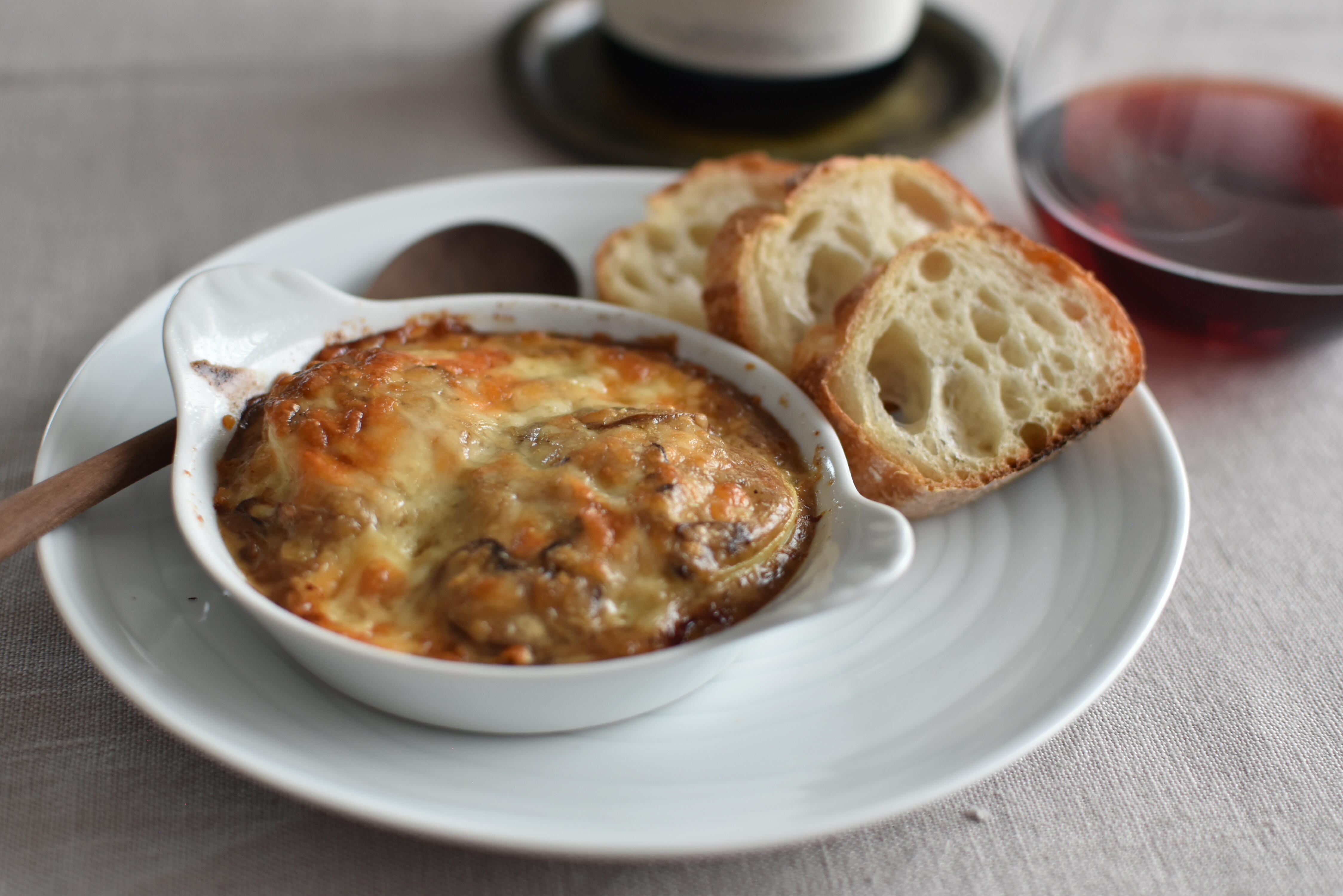 ヤリイカを使って、イカ飯ならぬ、クスクスを詰めた『ヤリイカとタブレのファルシ』。イカは、柔らかく小さな夏のヤリイカを使うのがおすすめ。一見手が込んでいるように見えますが、クスクスをふやかして、イカに詰めて焼くだけ。コクのあるイカ墨に、トマトの果肉もしっかり残るこのイカ墨トマトソースさえあれば、お手軽に少しよそ行きの一皿が完成します。