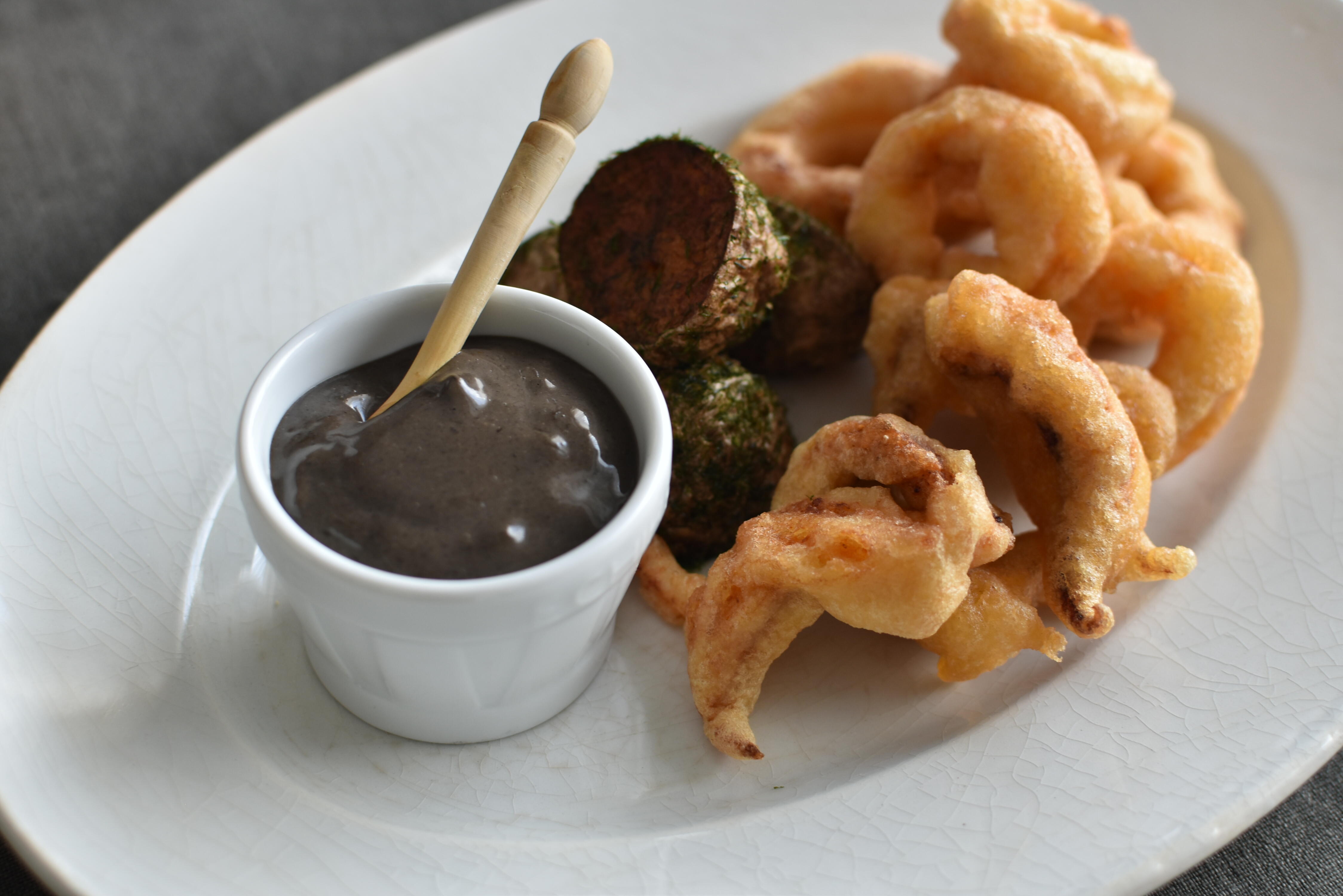 Itali@ - イタリアットのパスタソースを使ったアレンジレシピ。濃厚なイカ墨にトマトを加えた「イカ墨トマト」と、自家製マヨネーズを合わせた「イカ墨マヨネーズソース」をご紹介します。魚介の揚げ物との相性が抜群で、特にイカのベニエにぴったりです。「ベニエ」とは、フランス語で“揚げた生地”を意味し、外はカリッと、中はふんわりとした食感が特徴の揚げ物です。今回は、このベニエも併せてご紹介します。
