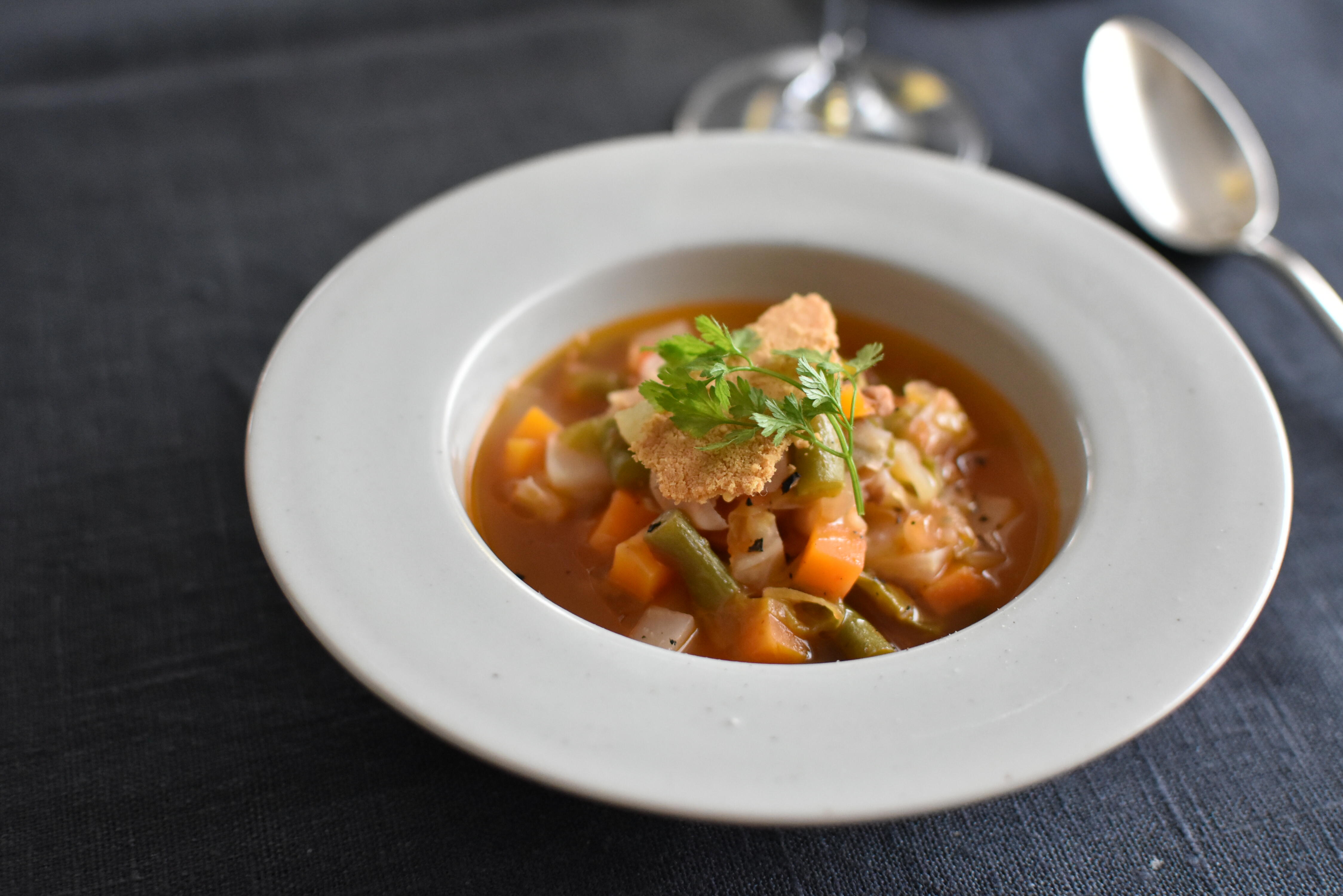 Itali@(イタリアット)のパスタソースを使ったアレンジレシピをご紹介。大豆ミートのボロネーゼを使った、野菜たっぷりのベジスープ。