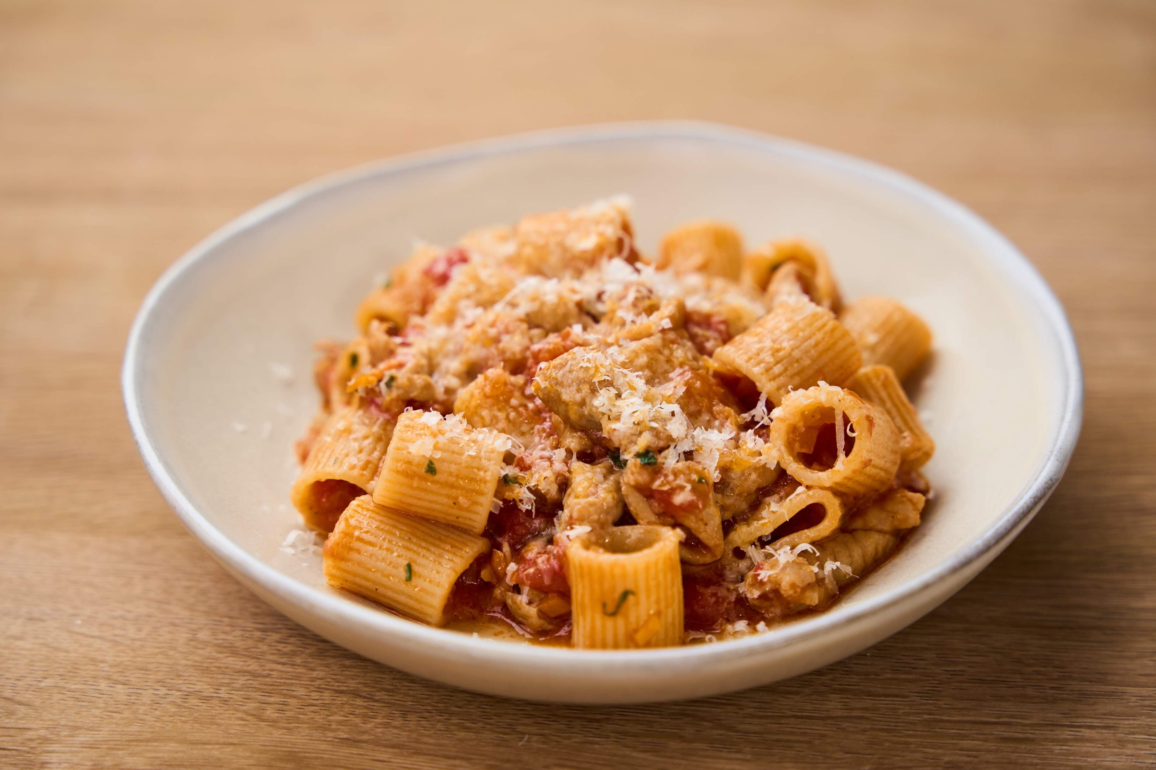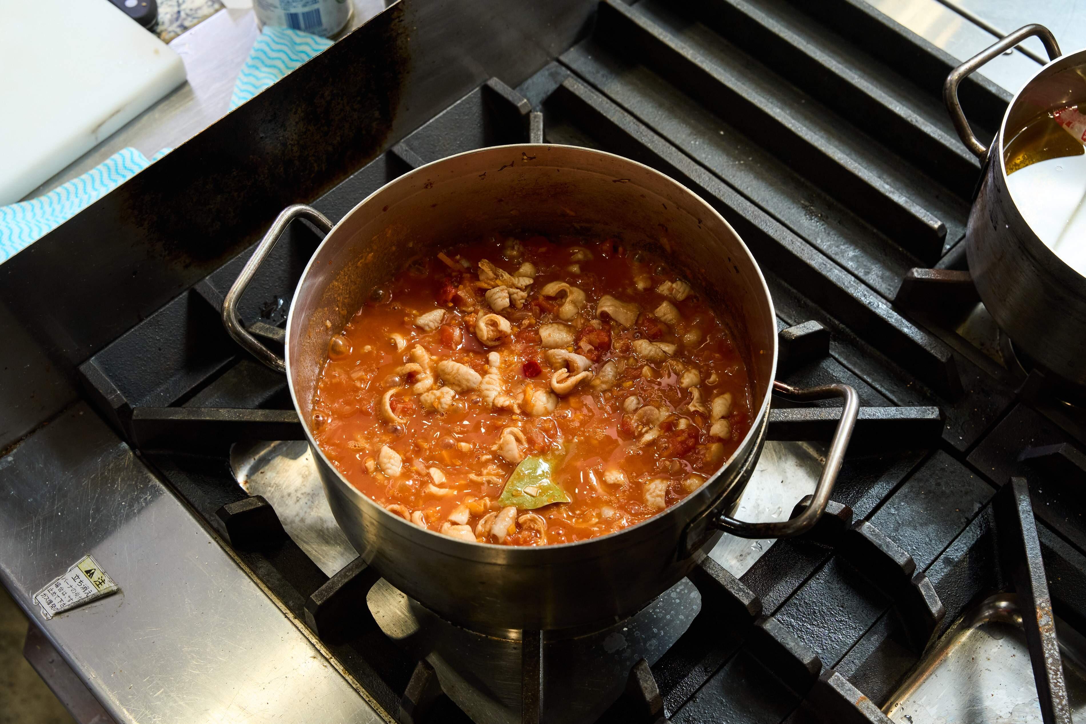 ローマの郷土料理である「パイヤータ」。本来は、仔牛の小腸を使いますが、日本の家庭でも手に入りやすい、白モツでパイヤータの基本的なトマト煮込みのスタイルと風味を再現しました。仕上げにペコリーノ・ロマーノチーズをかけたら、よりローマらしい仕上がりに!
