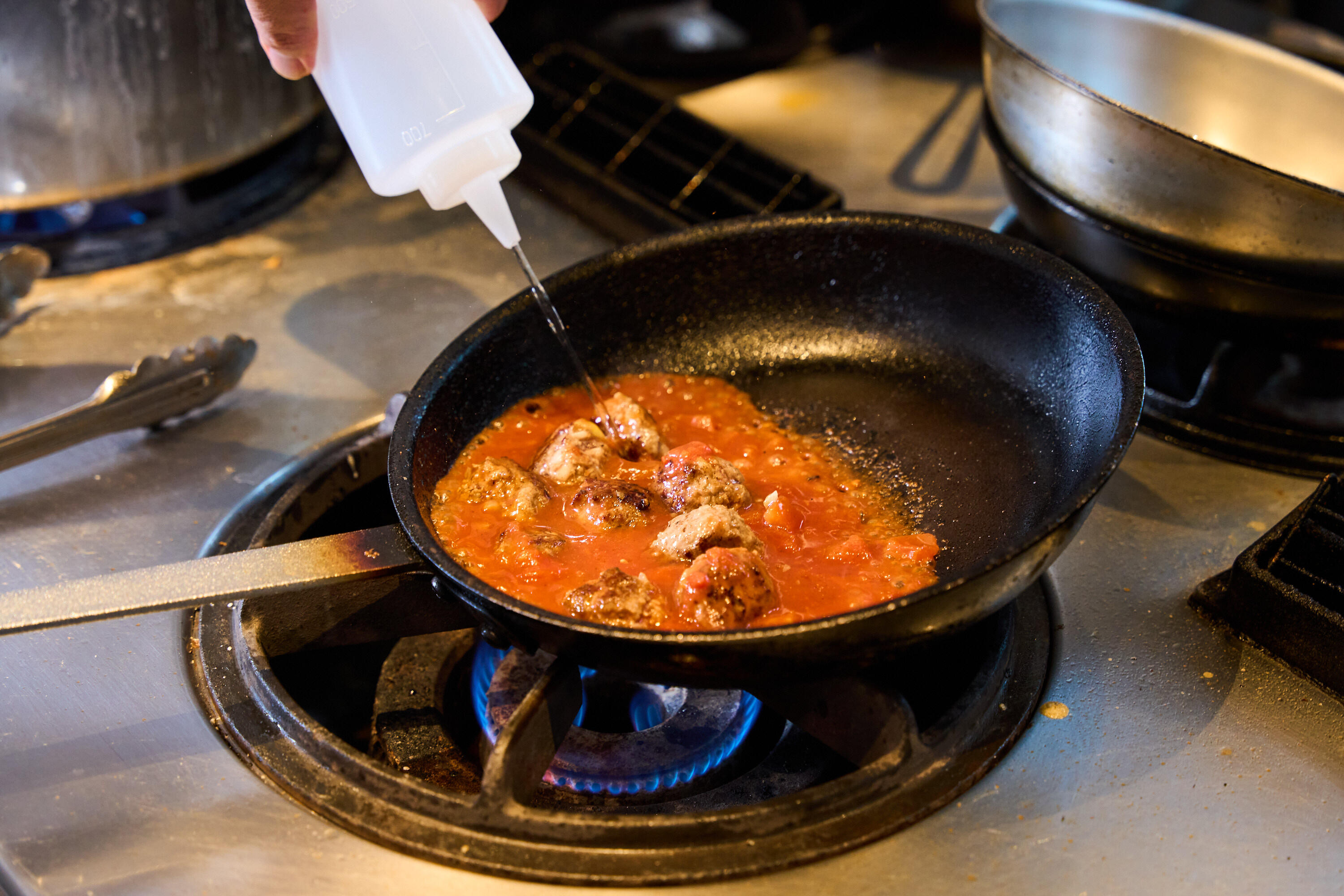 ・短時間でトマトソースを仕上げると酸味が残りますが、ウスターソースとケチャップを加えることで、煮込み時間が短くても味がまろやかに仕上がります。