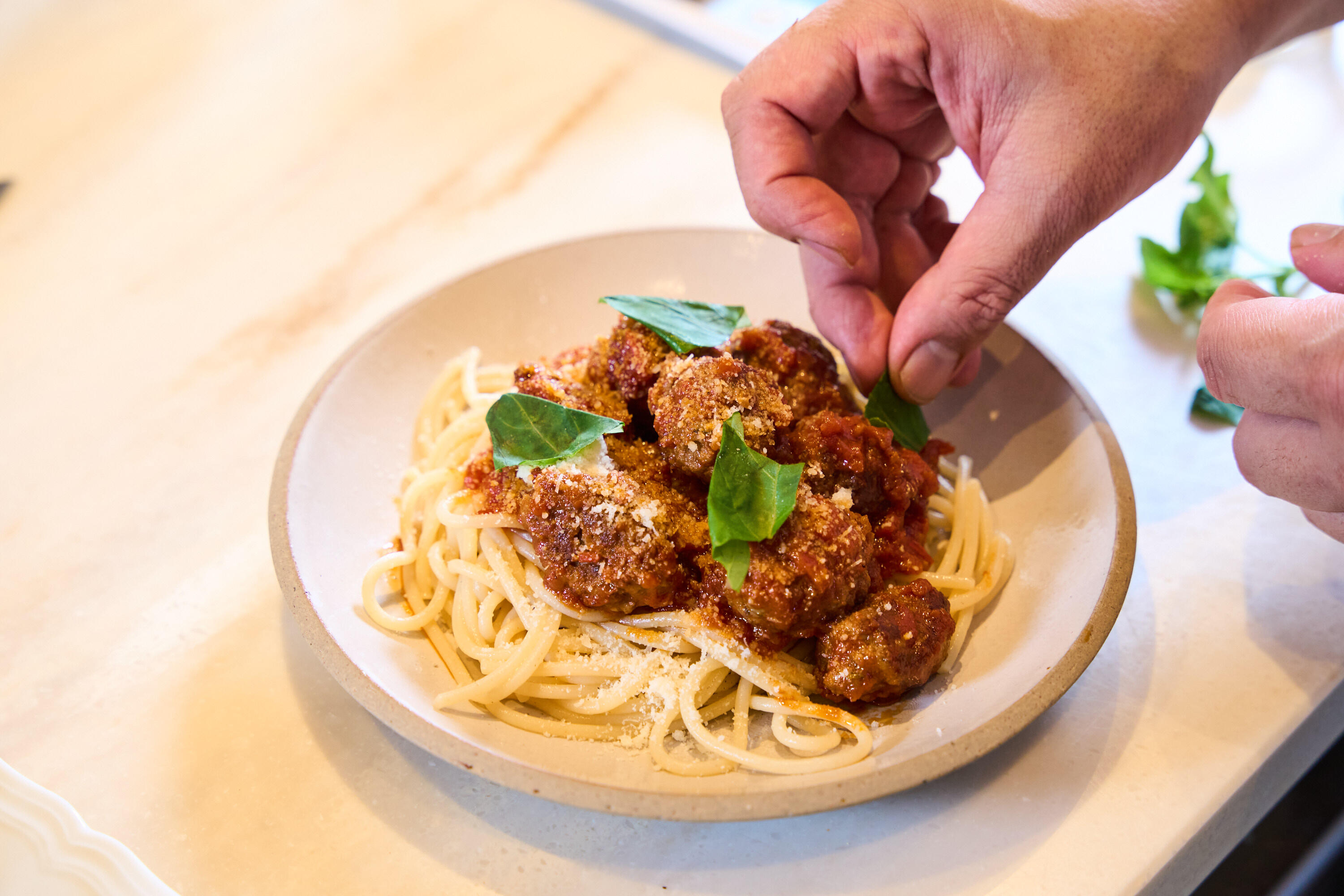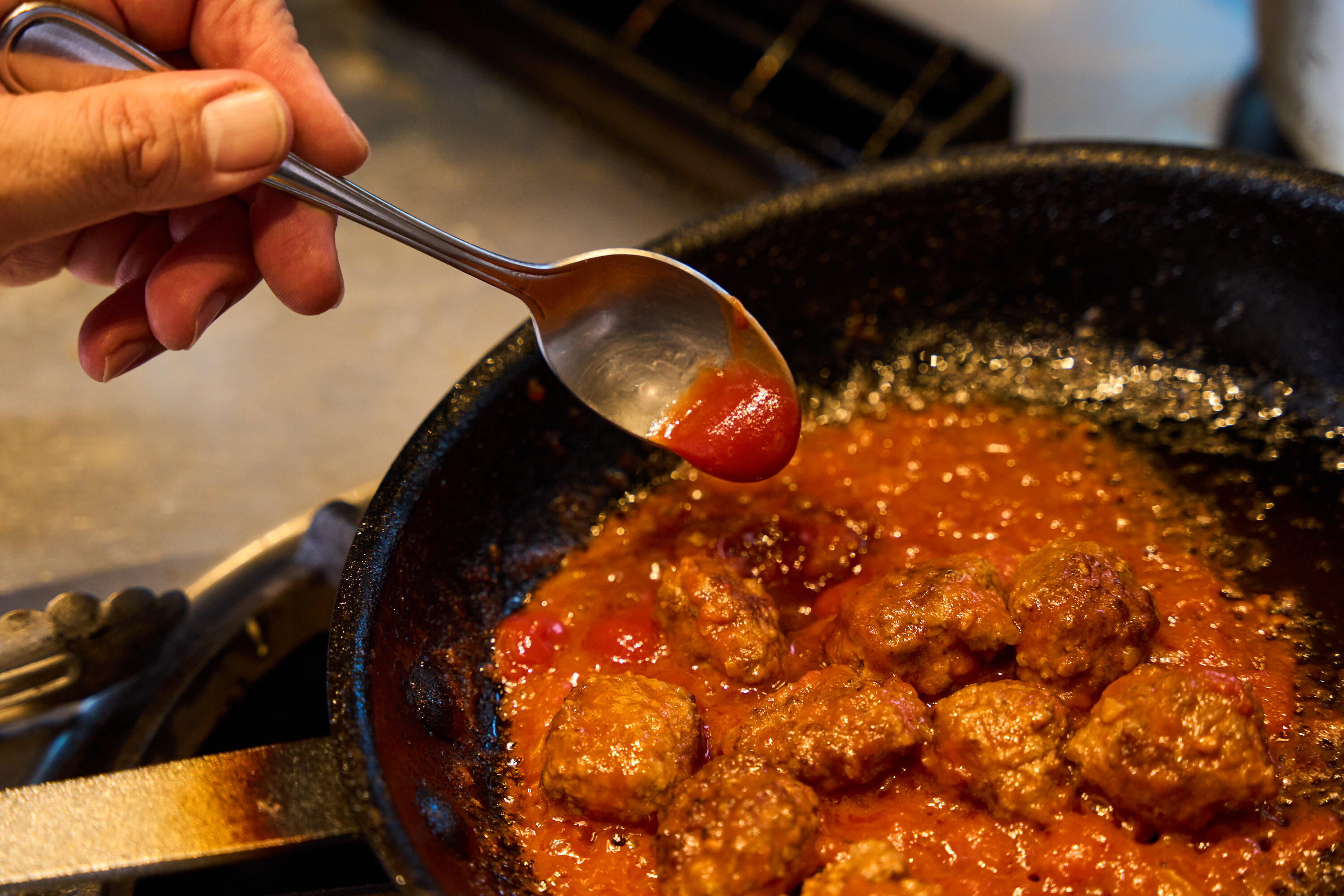 ・ミートボールはつなぎなしで作ることで、イタリアのポルペッテ(肉団子)のような食べ応えになります。