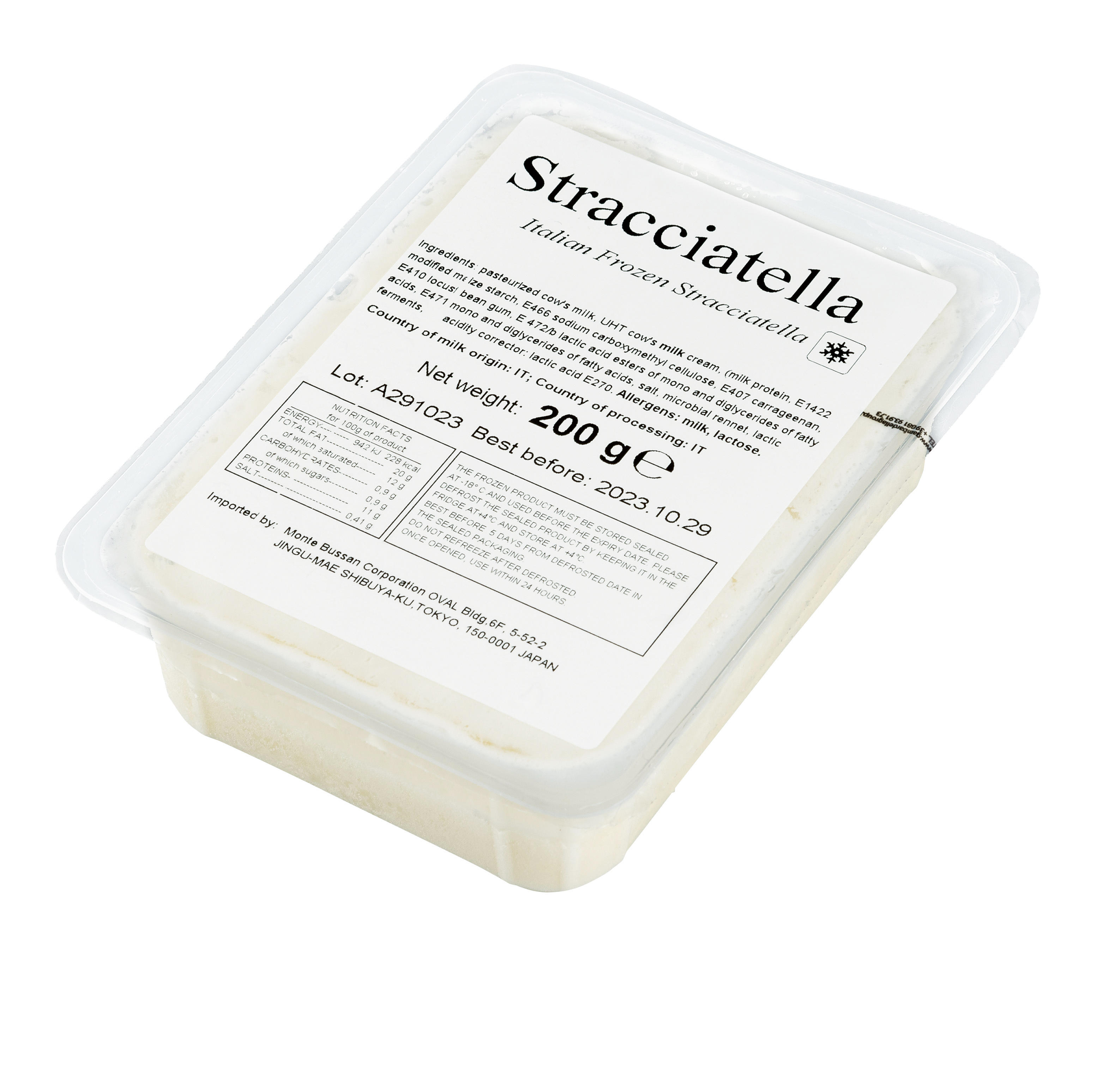 ズッキーニのカルパッチョにフレッシュな海老とクリーミーなストラッチャテッラチーズをあわせました。
